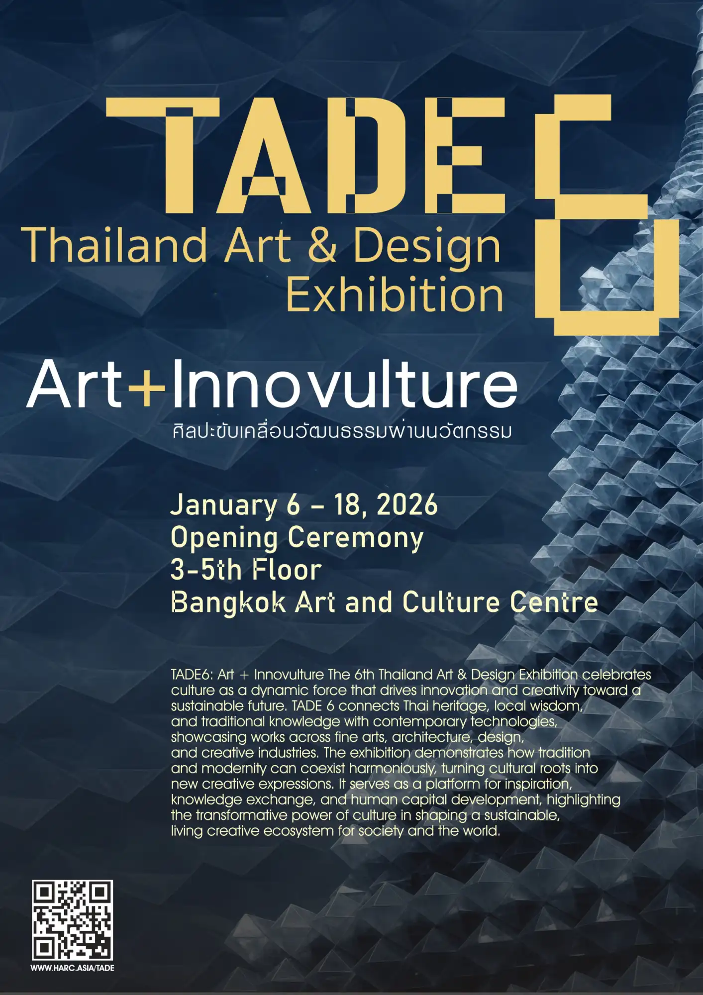 read more5th Thailand Art and Design Exhibition การแสดงผลงานศิลปะและการออกแบบแห่งประเทศไทย ครั้งที่ 5 ซึ่งจะจัดขึ้นในวันที่ 3 กันยายน 2567 เวลา 15.00 น. ณ หอศิลป์วัฒนธรรมแห่งกรุงเทพมหานคร ภายใต้แนวคิด "Cultural Nature & Natural Culture" หรือ "วัฒนธรรมธรรมชาติ ธรรมชาติแห่งวัฒนธรรม"